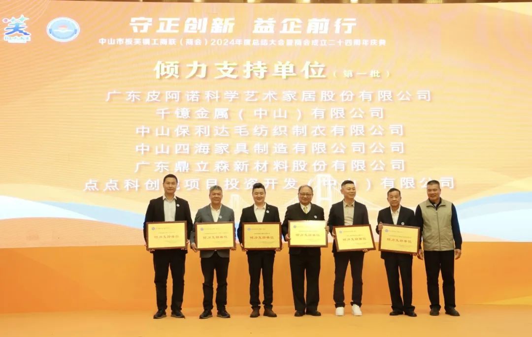 12月12日,中山市板芙镇工商联(商会)举行“守正创新 益企前行”2024年度会员大会暨二十四周年庆典。市工商联和板芙镇相关领导出席活动。royal皇家88(集团) 城项目投资开发(中山)有限公司等30家企业被授予板芙镇“百千万工程”“倾力支持单位”荣誉。